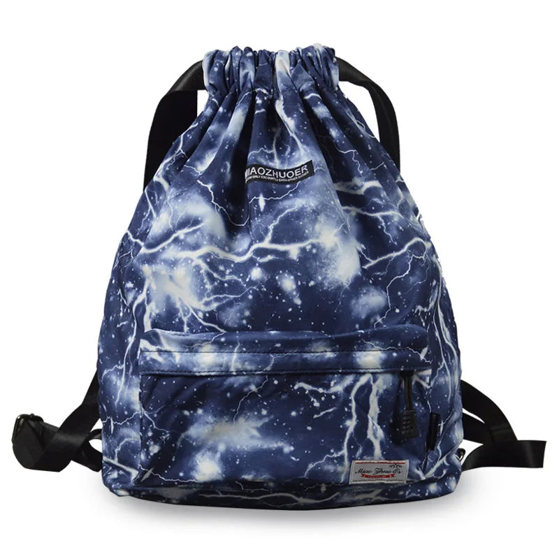 Stay organized and stylish on-the-go with this lightweight waterproof drawstring backpack. Perfect for sports, fitness, travel, and outdoor activities.