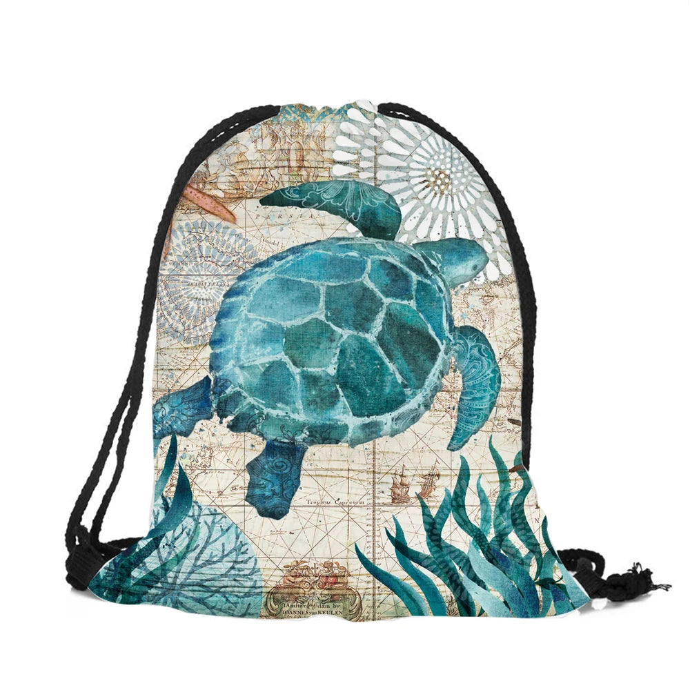 This backpack features a unique 3D printing design of marine animals like seahorse, turtle, and octopus. It is perfect for travel, gym, or as a shoulder bag.