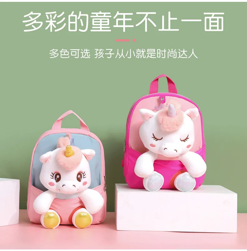 3D Unicorn Plush Toy Children Backpack - Kindergarten School Bags