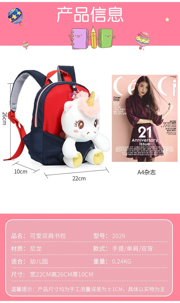 Description:This 10 inch kids bookbag is perfect for ages 4-8. The adorable unicorn design will make your child stand out at school!Features: Cute 3D unicorn plush toy design Ideal for kindergarten and school use Adjustable straps for a comfortable fit Spacious interior for books and toys Durable construction for long-lasting...