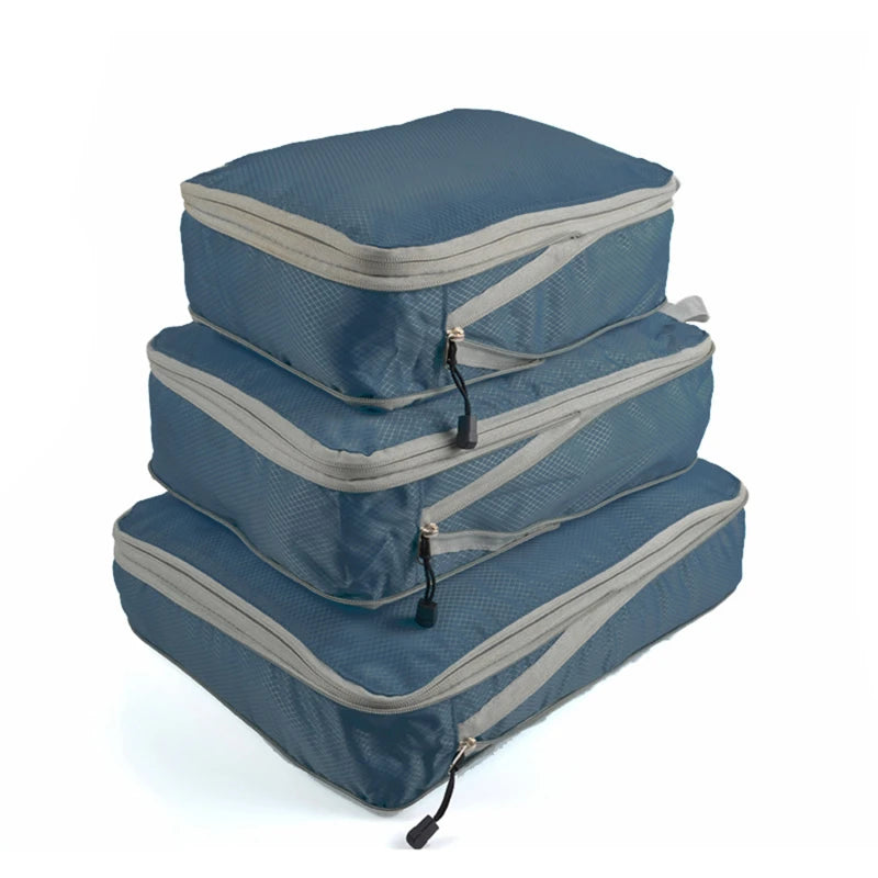 Organize and compress your luggage with this set of three travel storage bags. Perfect for maximizing space and keeping items neat during your travels.