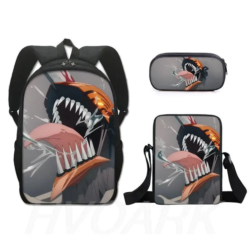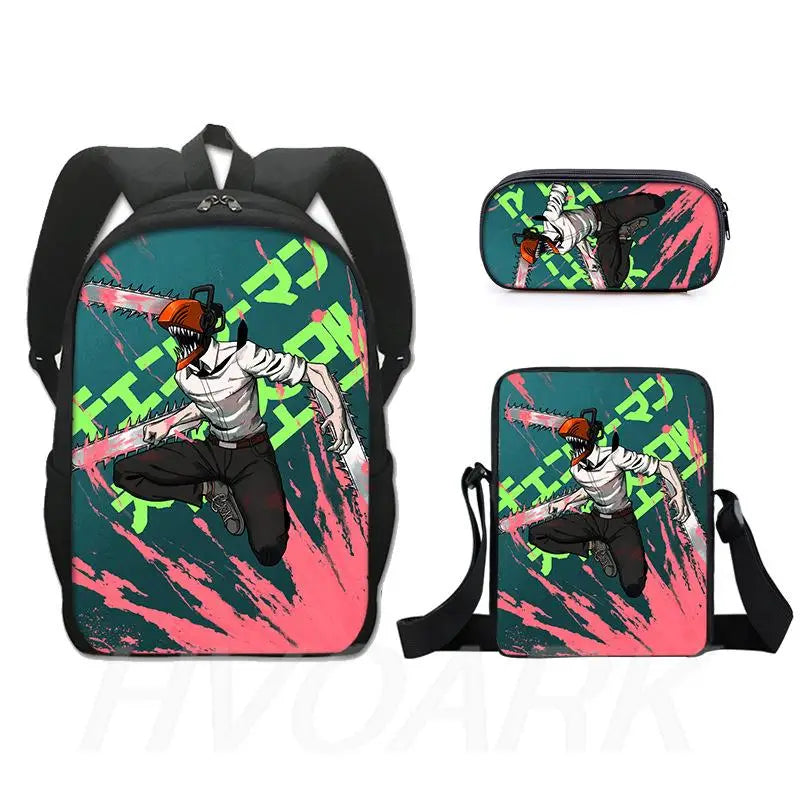 Get this set of 3 Chainsaw Man Pochita school backpacks for boys, girls, teens, and students. Perfect for school and daily use.