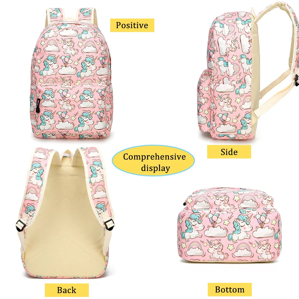 This set includes 3 school backpacks designed for teen girls, featuring a unicorn theme. The bags are lightweight, perfect for children's travel and school use.