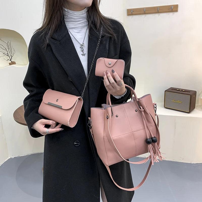 3pcs Women Bag Tassel Shoulder Crossbody PU Leather Handbag