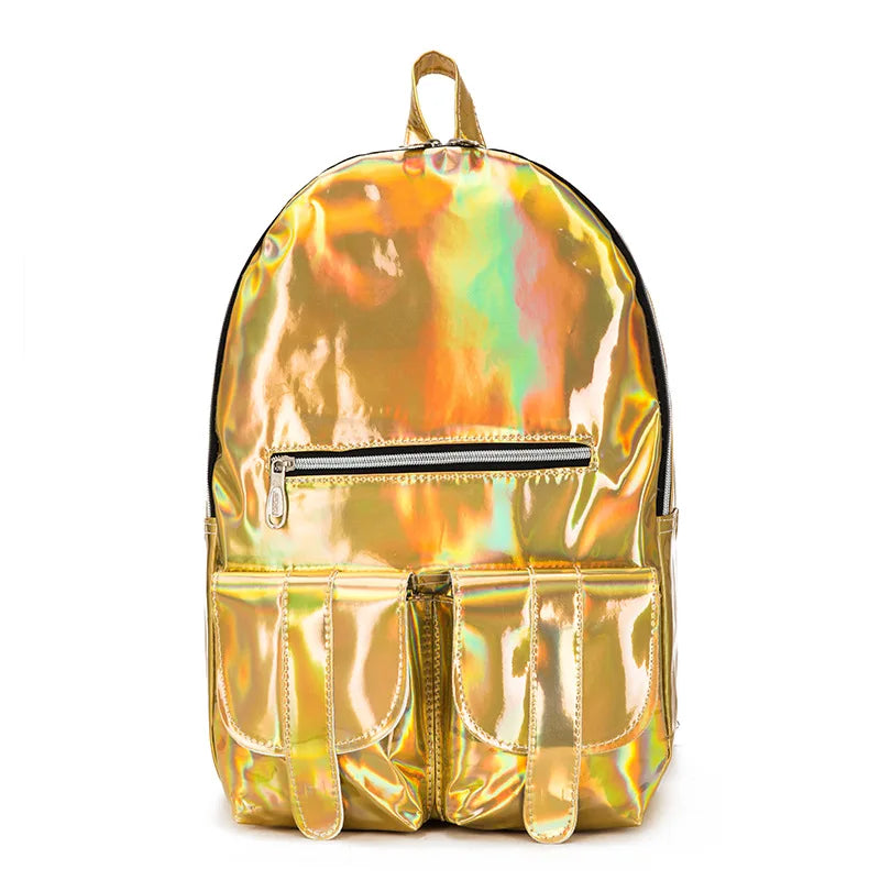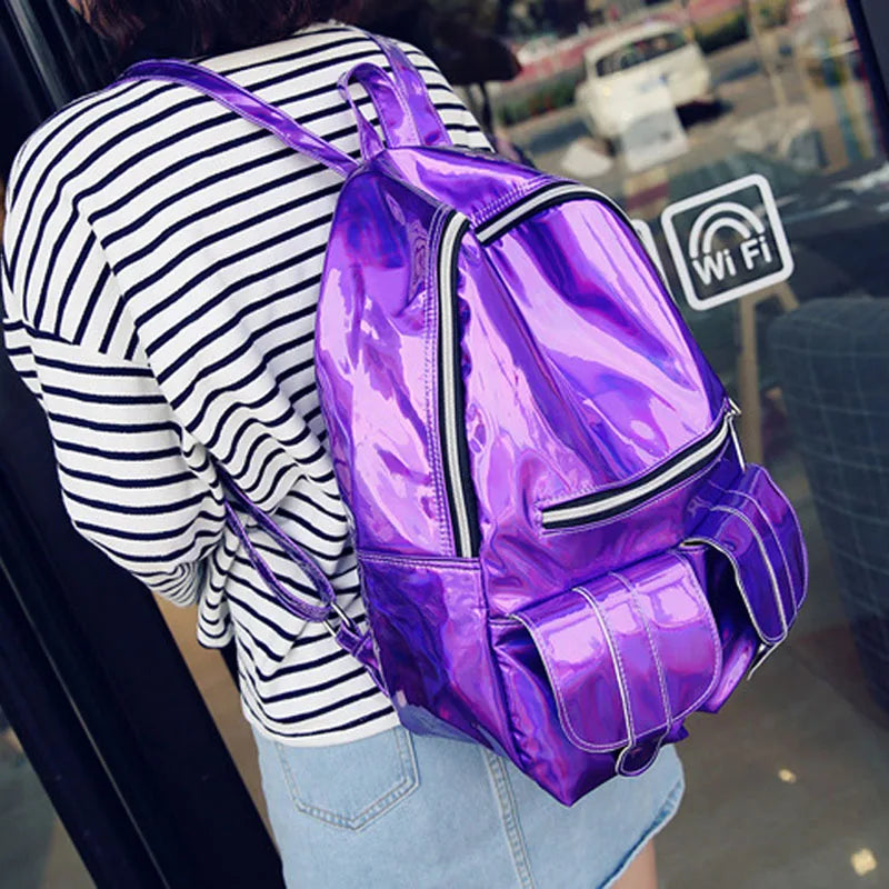 Stay stylish with these holographic leather backpacks perfect for teen girls. Made with PVC material, they offer a large capacity for all your essentials.