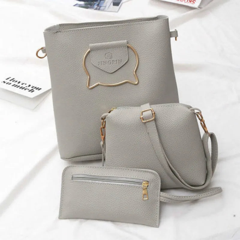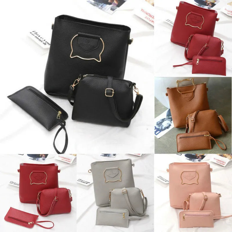 This 3PCS set includes a stylish leather satchel handbag, a shoulder messenger bag, and a crossbody wallet evening bag. Perfect for various occasions and outfits.
