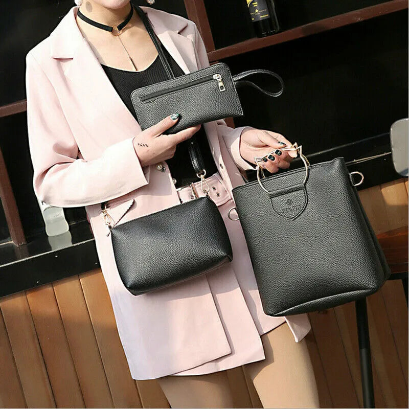 3PCS Women Leather Satchel Shoulder Crossbody Bag Wallet Evening Bag Set