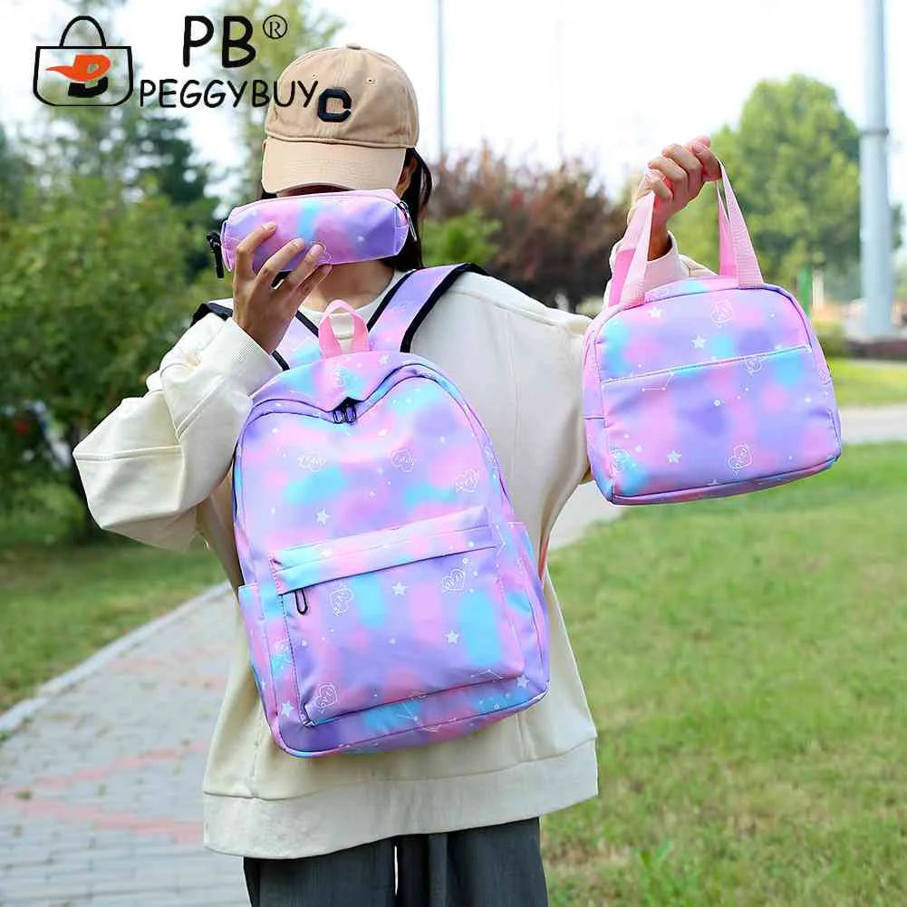 3pcs/set Laptop Backpack Nylon Casual Gradient Rucksack for Work School Travel