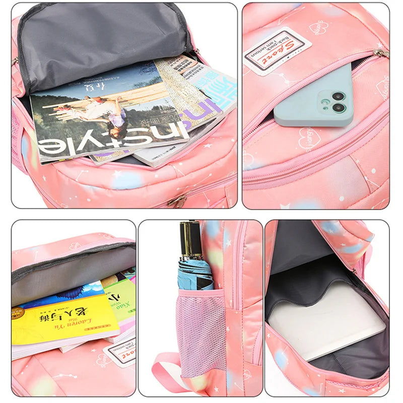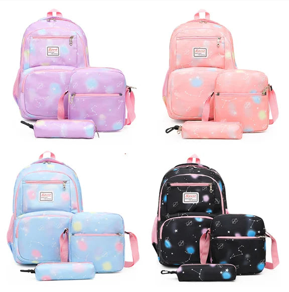 This set includes one shoulder bag, big student bag, and school backpack suitable for men, boys, and women. Perfect for travel and school use.