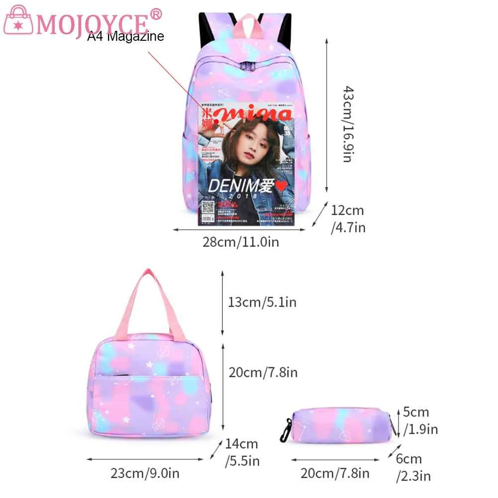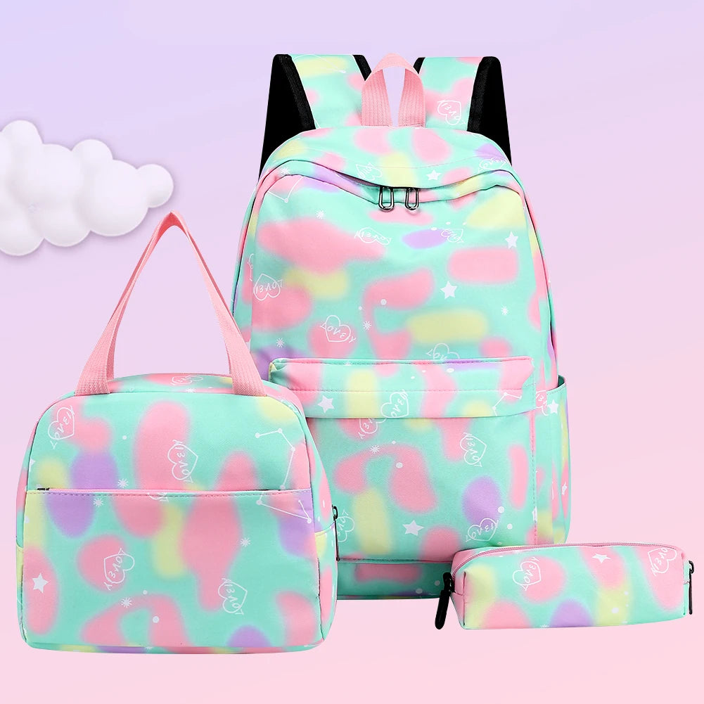 3pcs/set Nylon School Knapsack Gradient Casual Daypack Large Capacity Women