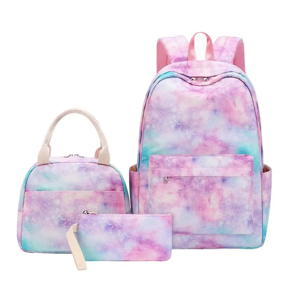 3Pcs/Set Starry Print Student Backpack - Lightweight Bookbag, Handbag, Pencil Ba