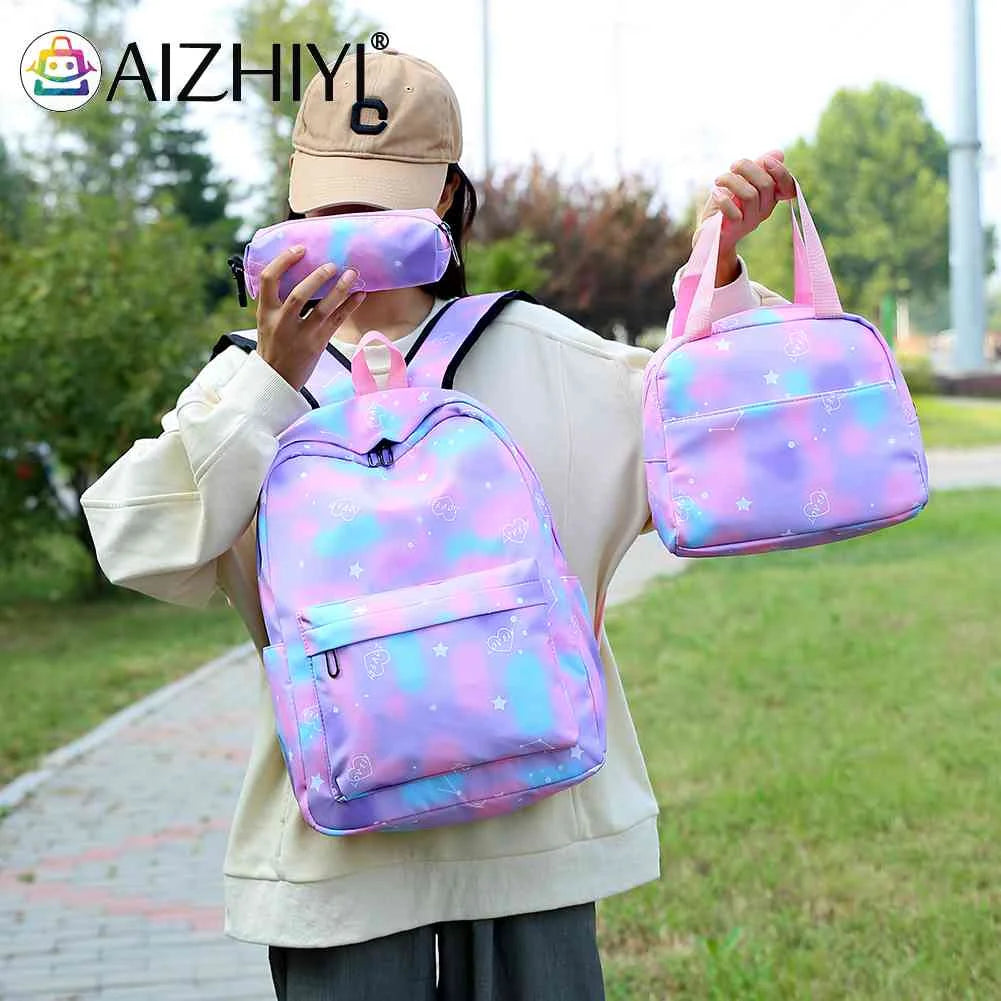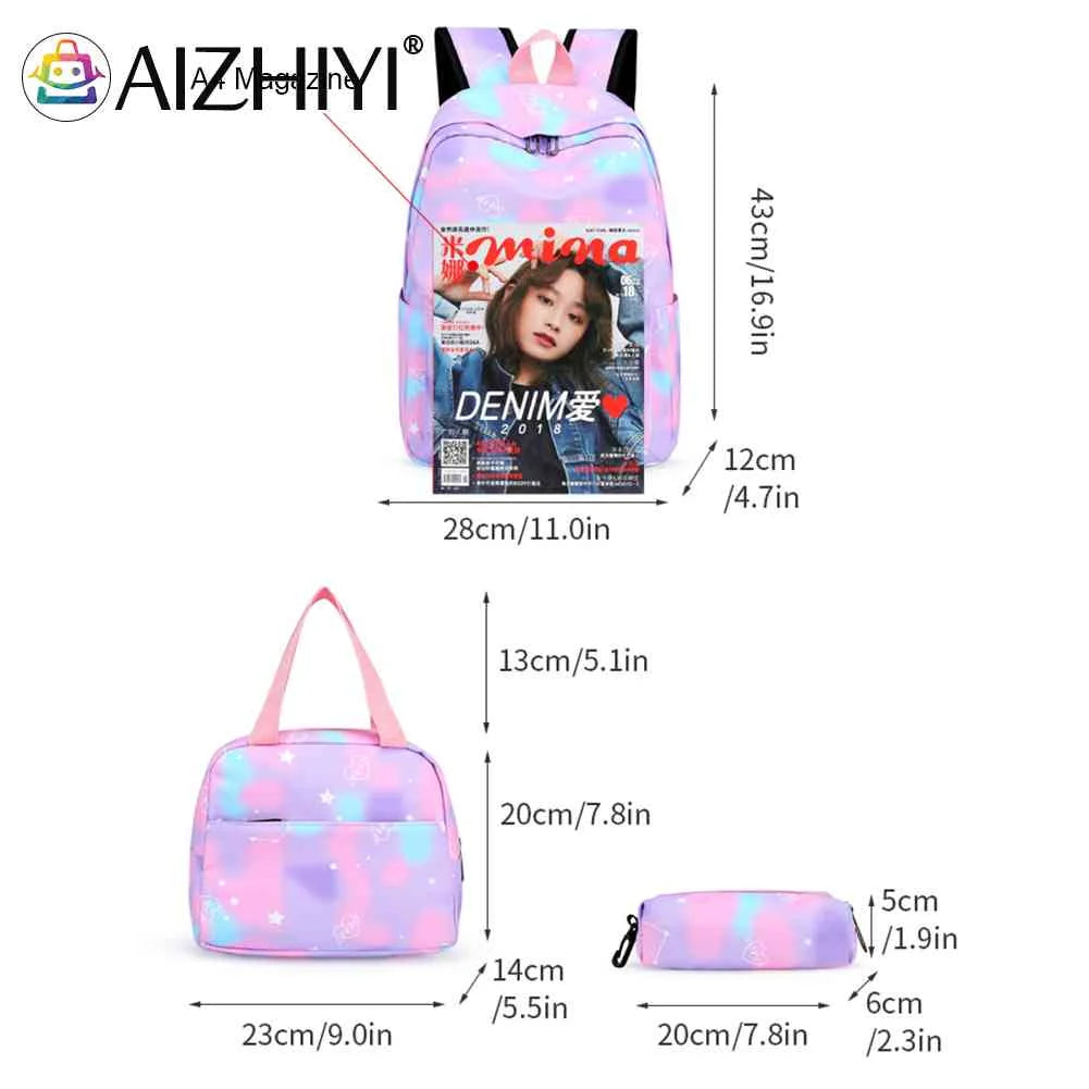 3pcs/set Women Nylon Travel Backpack Gradient Bookbags for Work School Travel
