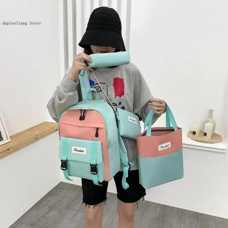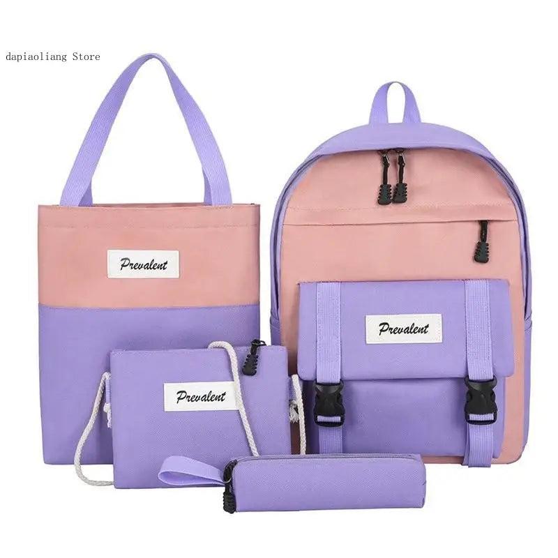 4-Piece Fashionable Female Backpacks Canvas Waterproof Bookbags