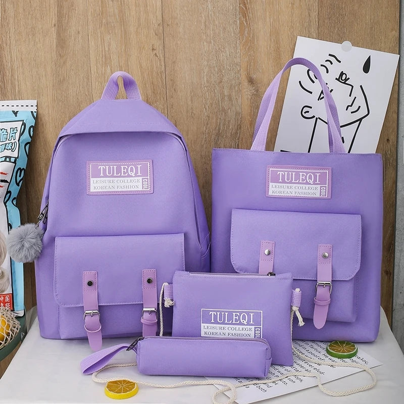 4-Piece Nylon Teen Shoulder Bags Set Casual School Backpacks