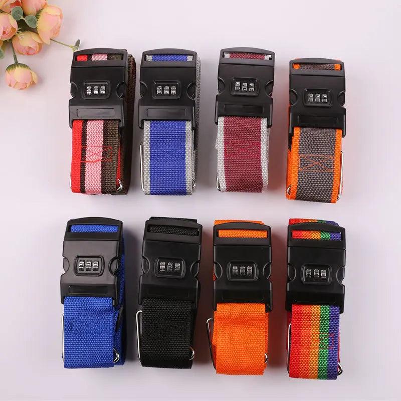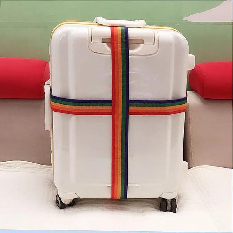 Ensure your luggage is secure with this colorful 4M rainbow packing bag featuring a 3-digit password lock and adjustable buckle strap.