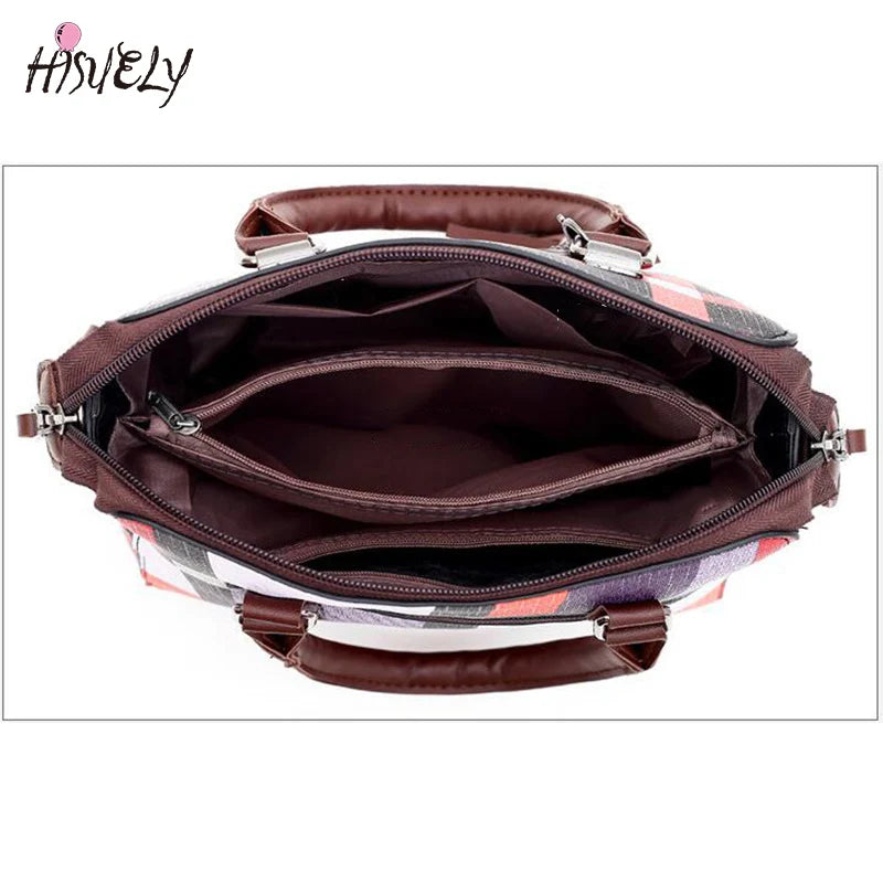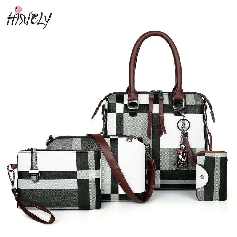 4PCS Set PU Leather Plaid Shoulder Bag Top-Handle Bag for Women