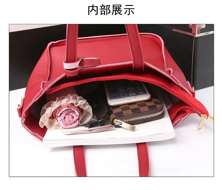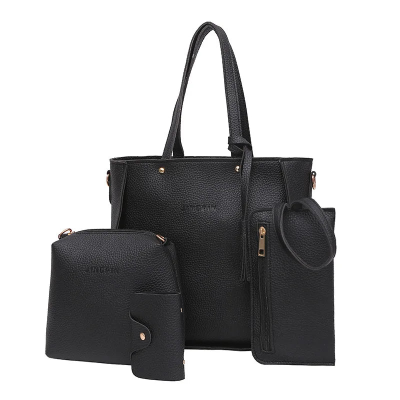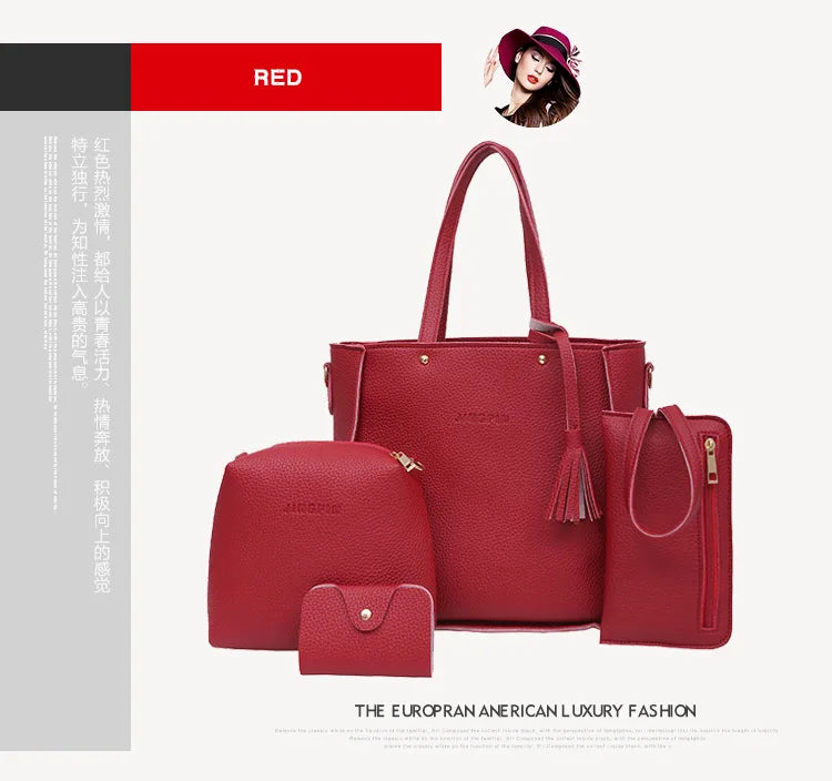 Stay stylish and organized with this 4-piece bag set including a shoulder bag, crossbody bag, messenger bag, tassel handbag, and wallet purse.