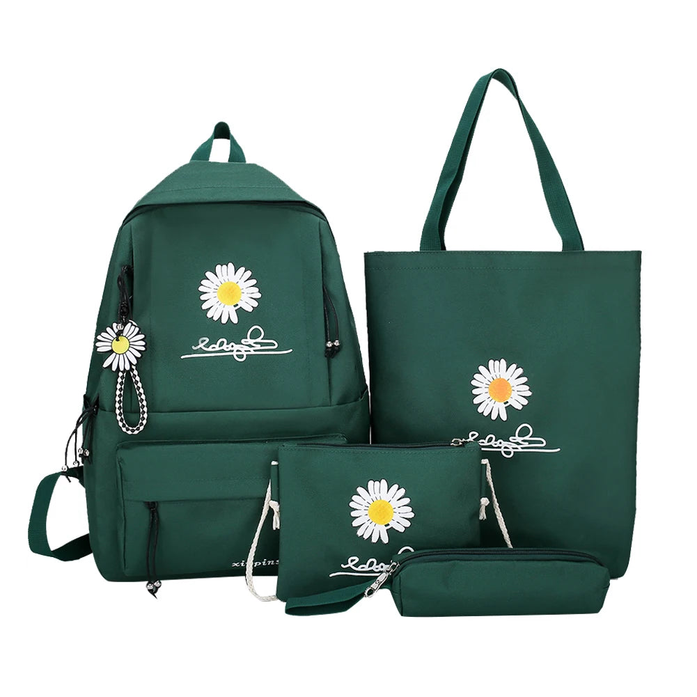 4pcs/Set Daisy Print Backpacks Canvas Rucksack Female School Backpack