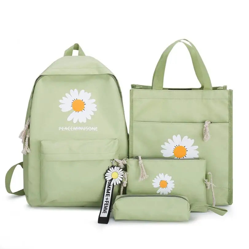 This 4-piece set includes school backpacks made of durable nylon. Perfect for students, girls, boys, and teenagers. Stylish and practical for carrying books and essentials.