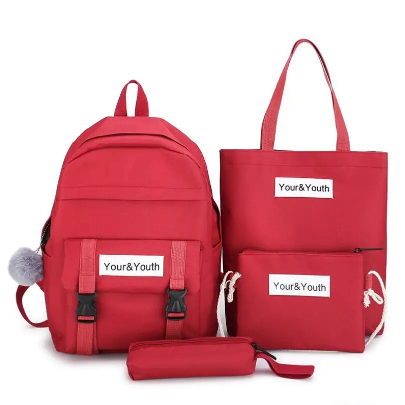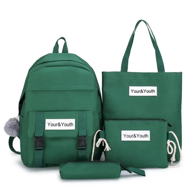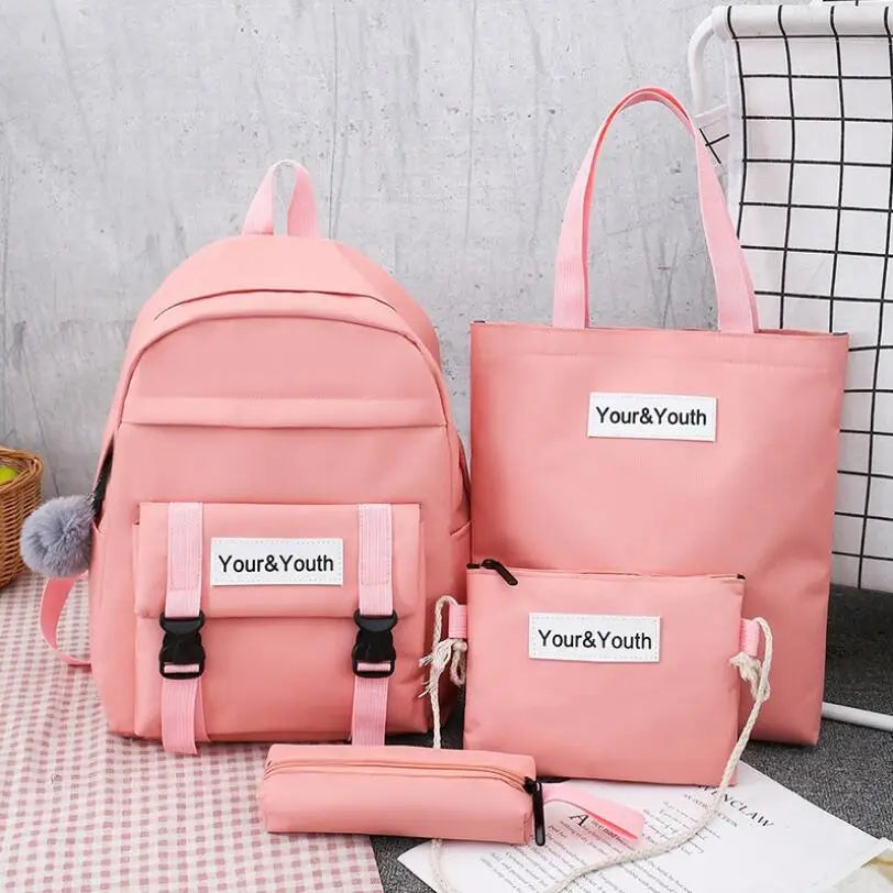4Pcs/Set Women Canvas Schoolbag Large Capacity Backpack for Teenagers