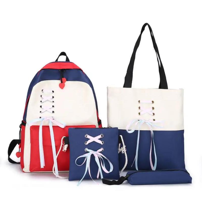 4Pcs/set Women School Backpacks Nylon Schoolbag For Teenagers Girls Student