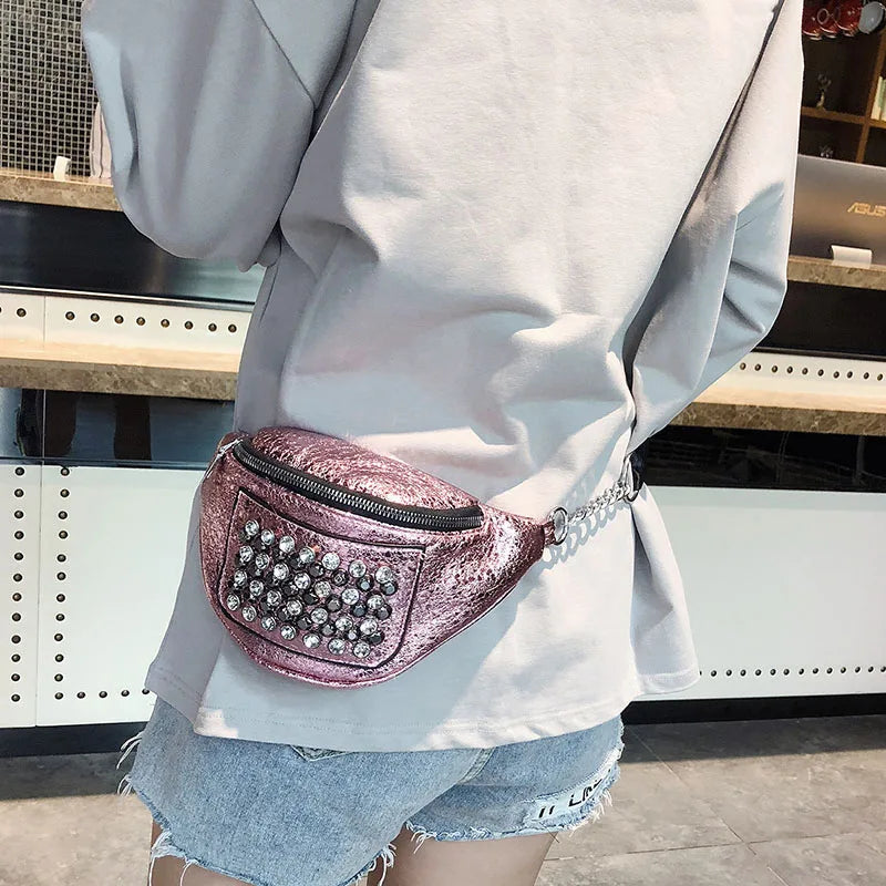 - Set of 5 Punk Women Waist Packs with Rhinestones