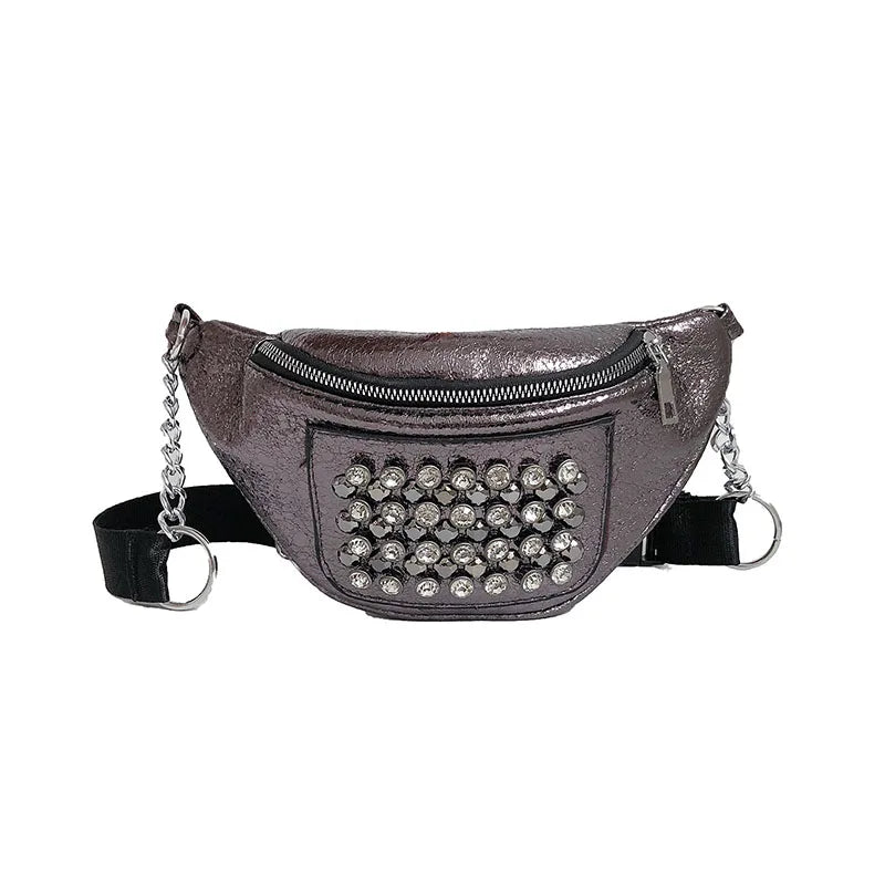 5PCS Punk Women Waist Pack Rhinestone PU Leather Chest Shoulder Bags