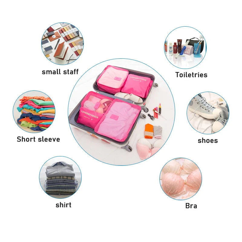 6-Piece Nylon Packing Cube Travel Bag Set for Clothing Organization