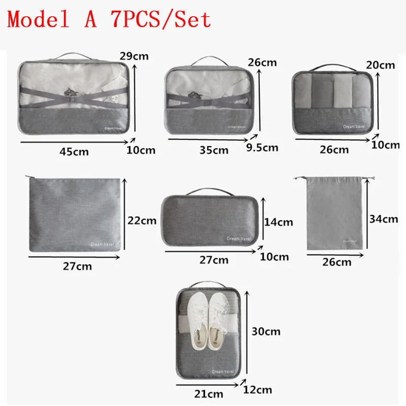 7PCS Cube Travel Accessories Waterproof Bags Mesh Bag In Pouch Luggage Organizer