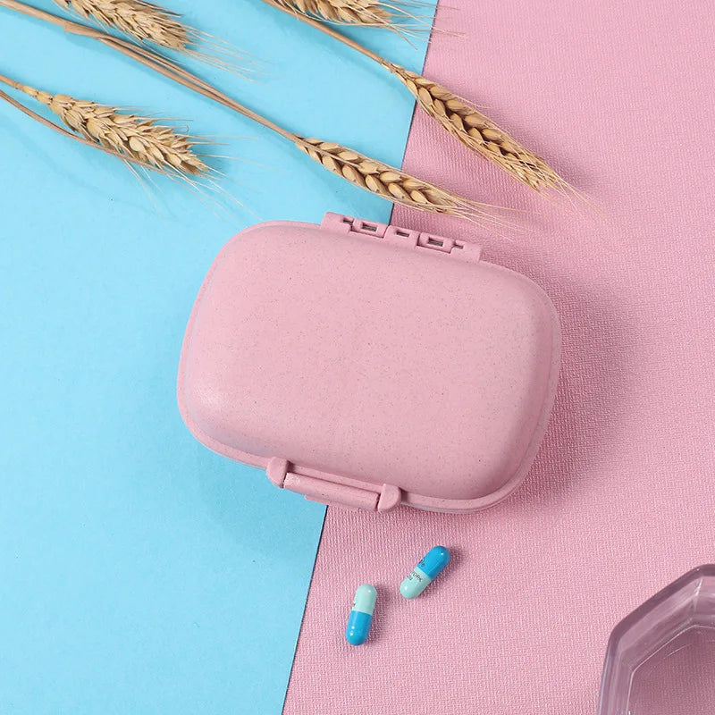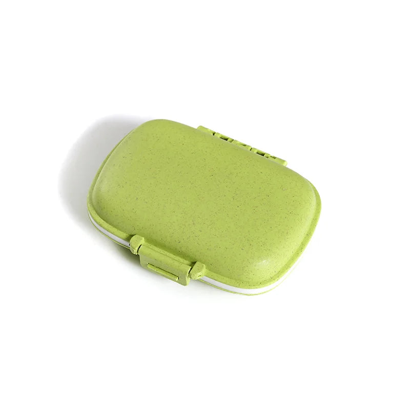 This small box is designed to keep your tablets organized during travel. It features a seal ring to ensure the tablets stay secure. Made of wheat material, it is an eco-friendly container for medicines.