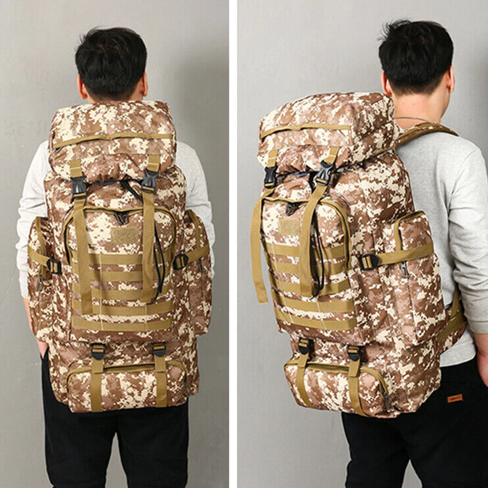 This tactical military backpack is perfect for travel, climbing, and outdoor activities. Made of durable canvas material, it offers a spacious 80L capacity.