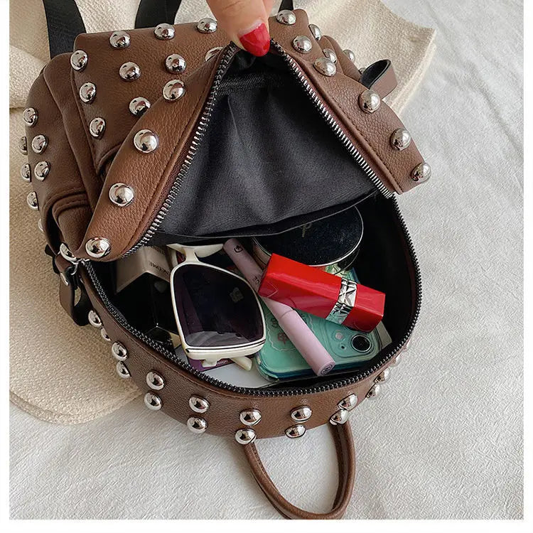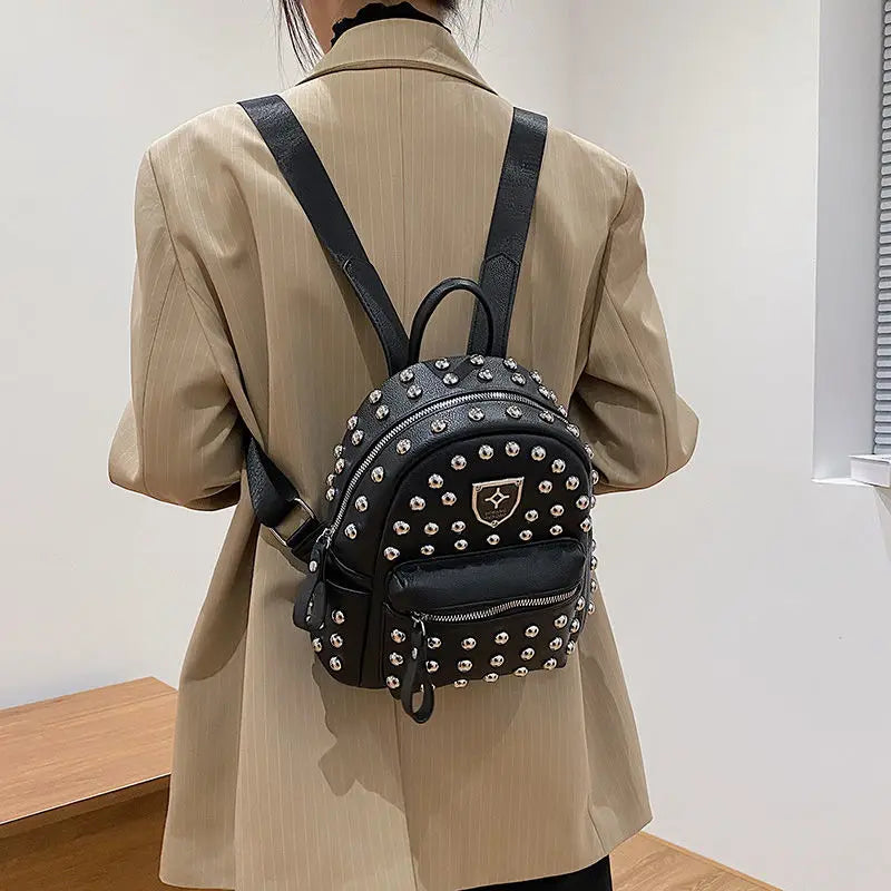 9 Inch Women Backpack with Rivets, Pu Travel Bag