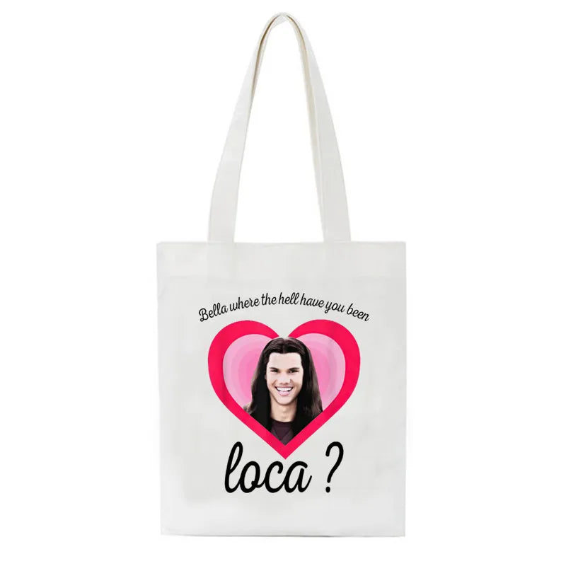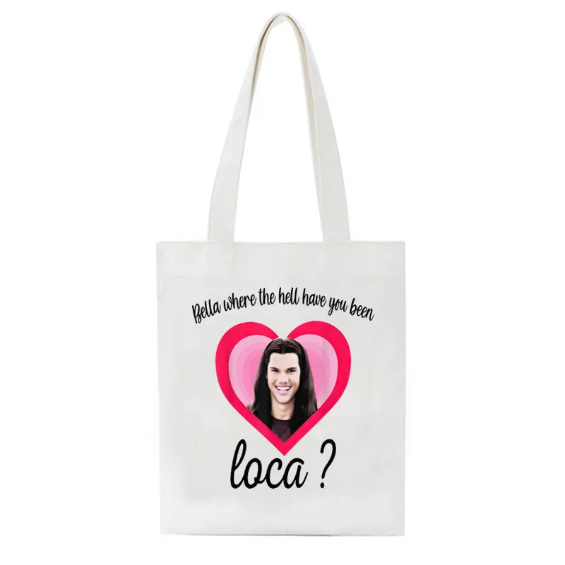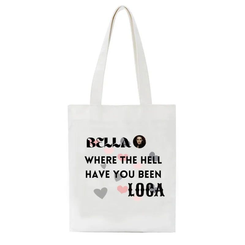 Get a touch of 90s style with this Bella Where Have You Been Loca canvas handbag. Perfect for shopping, school, or everyday use.