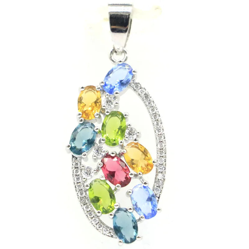 Description:This stunning 925 sterling silver pendant features colorful topaz, citrine, peridot, violet tanzanite, and tourmaline gemstones. A beautiful and vibrant addition to any jewelry collection.Features: 925 sterling silver pendant Colorful topaz, citrine, peridot, violet tanzanite, tourmaline Stunning and vibrant design Perfect for adding a pop of color to any outfit...