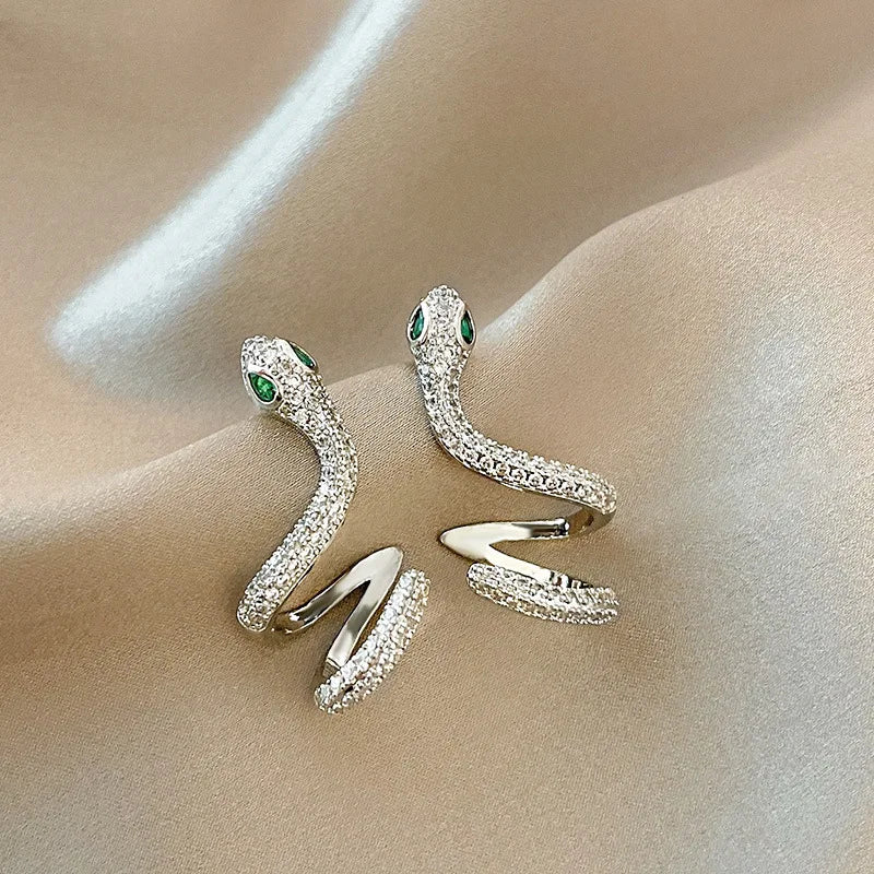 Make a bold statement with these snake-shaped ear studs featuring microinlaid zircon detailing. Crafted from 925 silver, these earrings are perfect for adding a touch of glamour to any outfit.