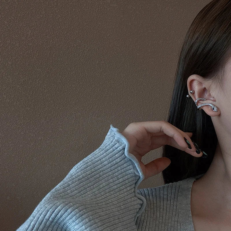 925 Silver Zircon Snake Earbone Clip Earstuds