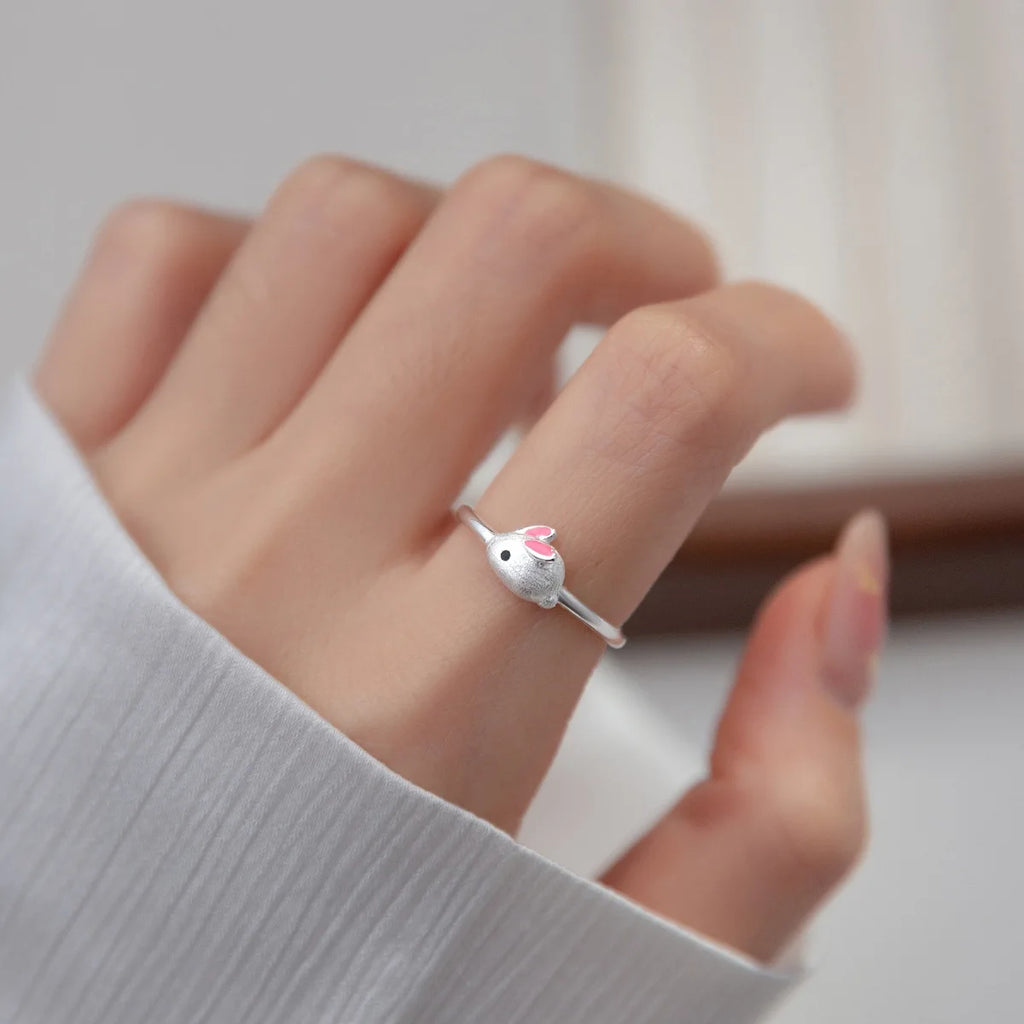 This adorable rabbit opening ring is made of genuine 925 sterling silver. Perfect for girls and kids as a lovely finger jewelry gift.