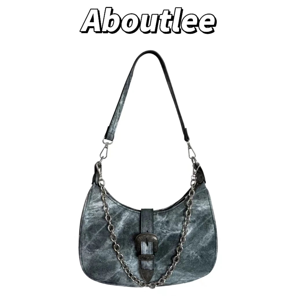 Aboutlee Pu Leather Women Shoulder Bag Chain Decorated Side Bag