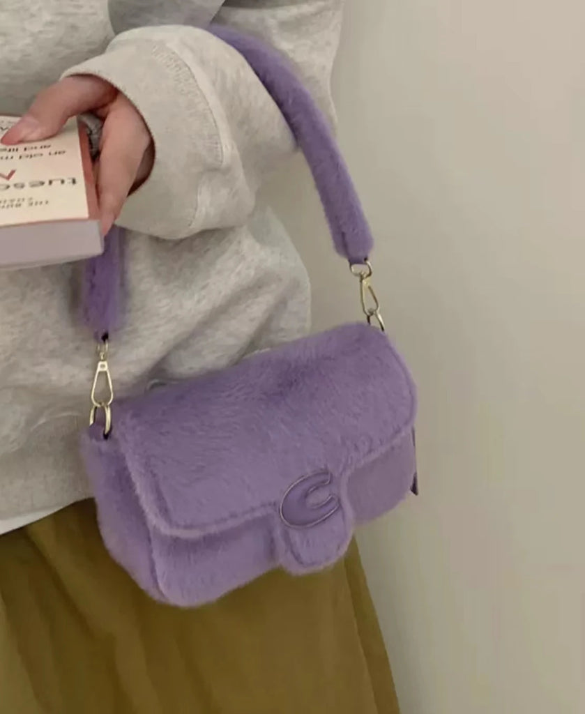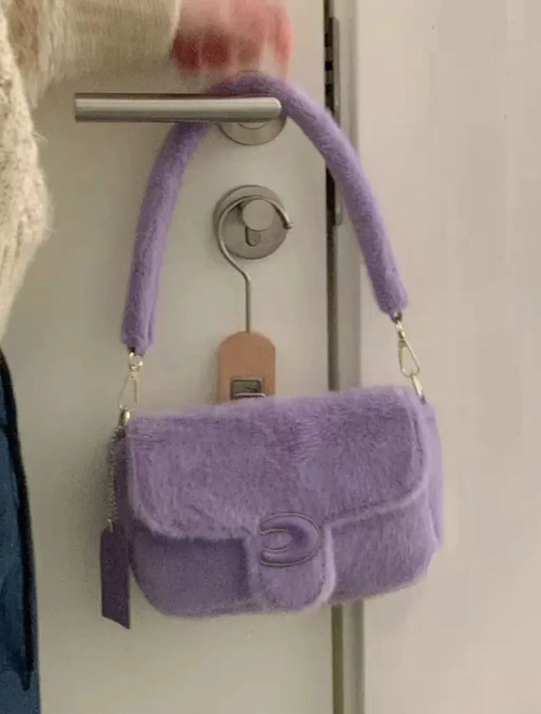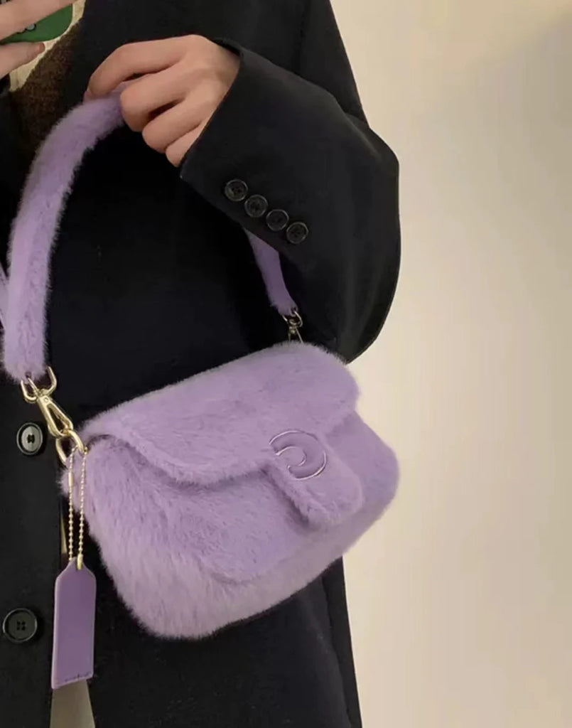 Aboutlee Purple Furry Shoulder Bag Retro Casual Handbag