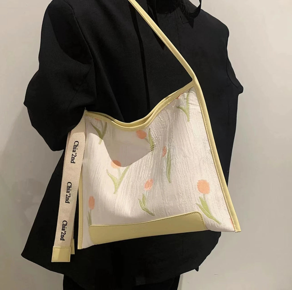 Aboutlee Tulip Pattern Shoulder Bag Lightweight Casual Outing Bag