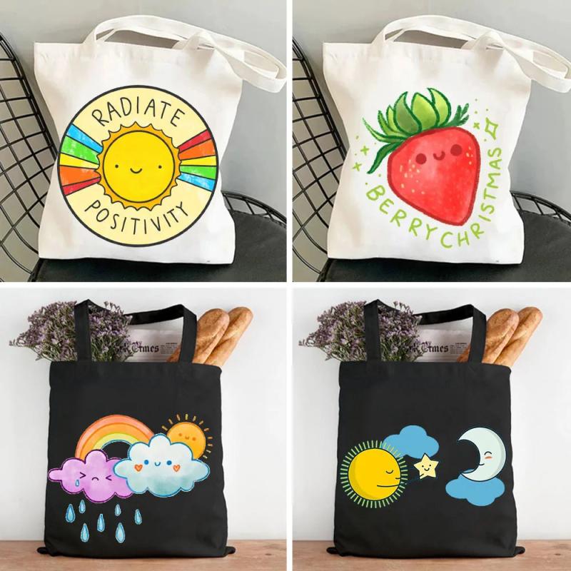 Abstract Clouds Sunshine Rainbow Sunshine Frog Sun Moon Strawberry Women Canvas
