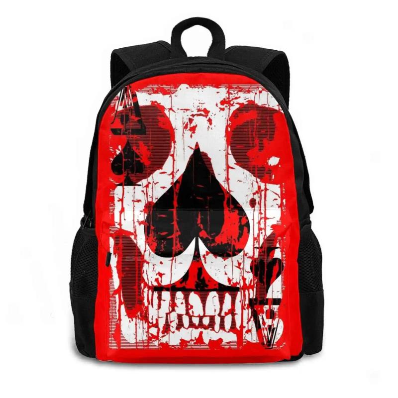 This stylish backpack features an Ace of Spades gambling death skull design, perfect for school or travel.