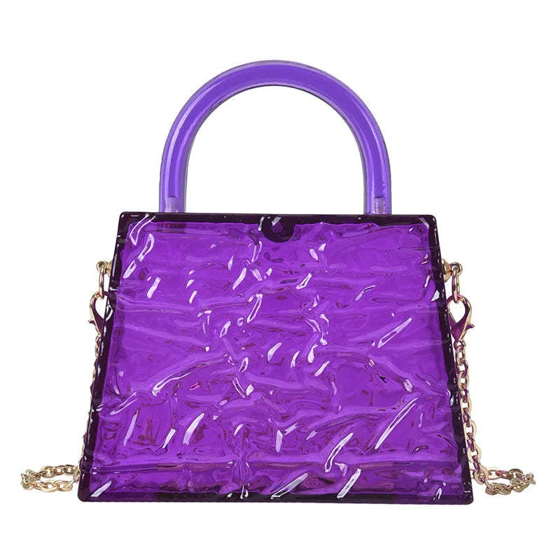This stylish handbag is perfect for parties, proms, and evening events. Made of transparent acrylic, it offers a unique and trendy look. The box design adds a modern touch to your outfit.