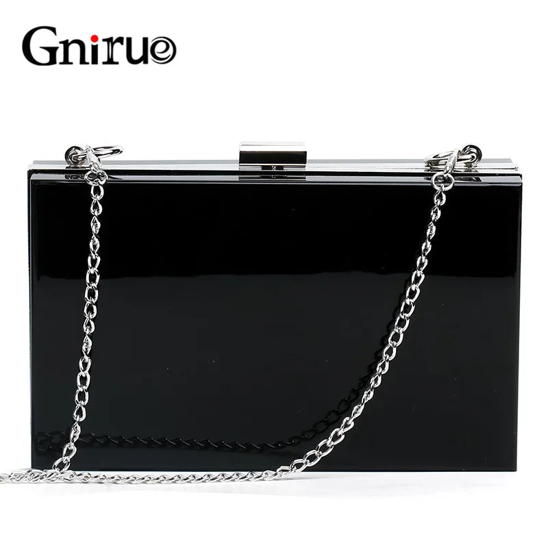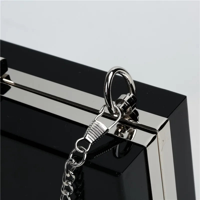 Elegant and stylish acrylic clutch bag with chain strap, perfect for parties and evenings out.