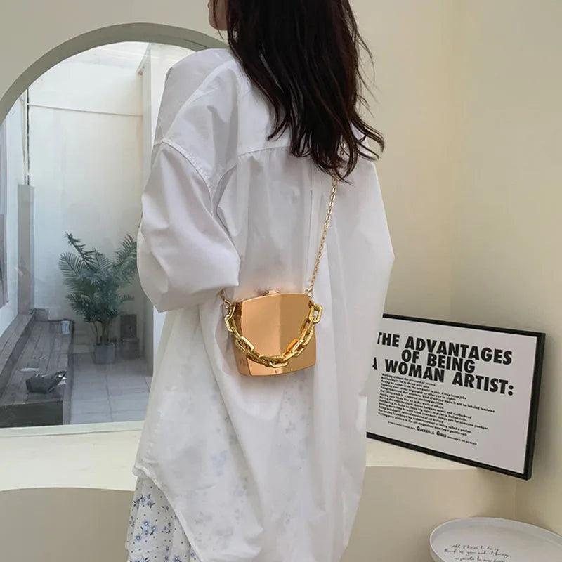 This acrylic crossbody bag is perfect for adding a trendy touch to your outfit. It features a chain shoulder strap, box design, and is ideal for evening events.