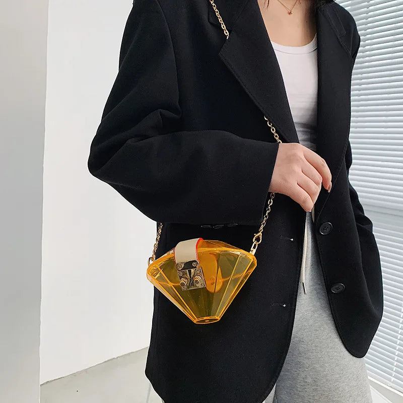 Add a touch of elegance to your outfit with this trendy acrylic clutch bag. Perfect for parties and special occasions.