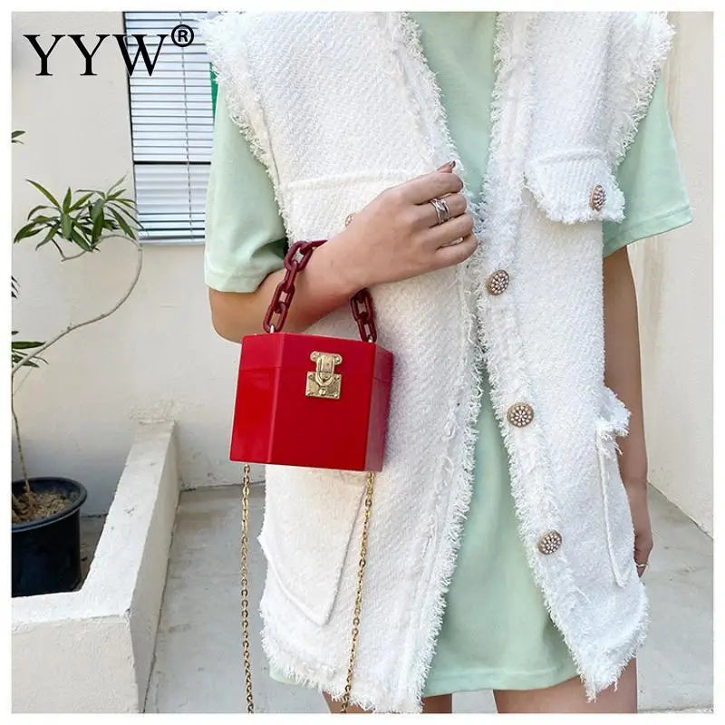 Acrylic Ins Female Clutch Box Purse PVC Mini Hand Bags Chains Shoulder Purses