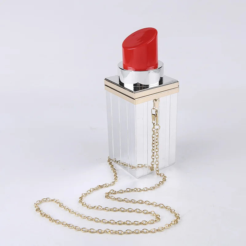 Acrylic Lipstick Chain Shoulder Bag for Women Funky Purses Handbags