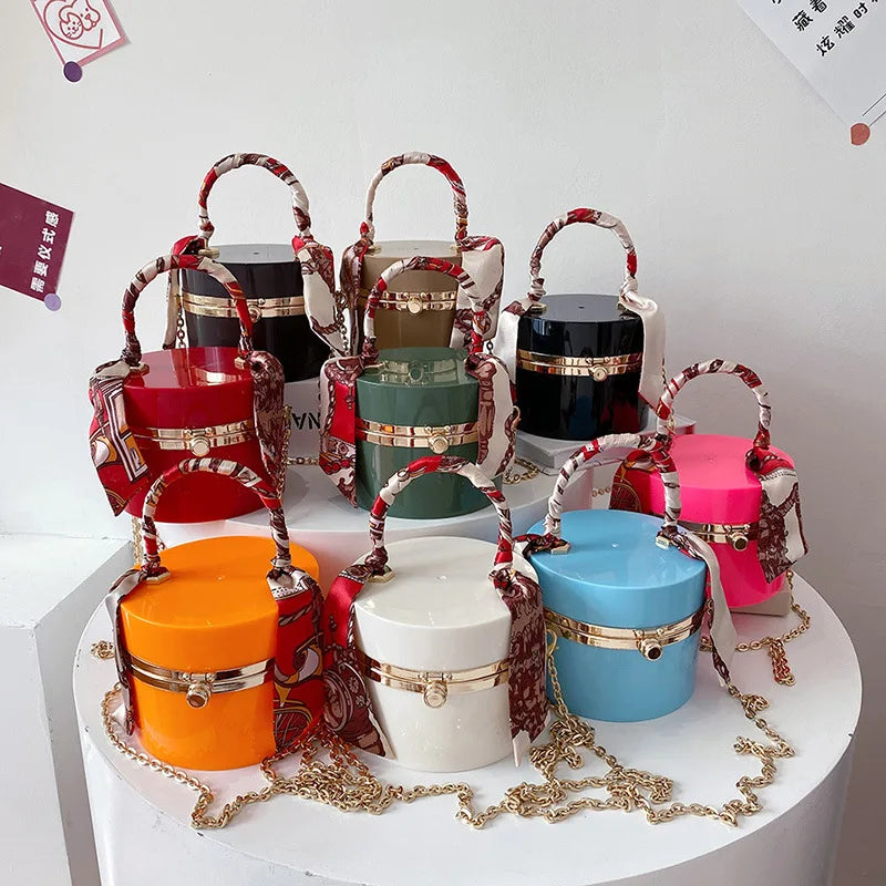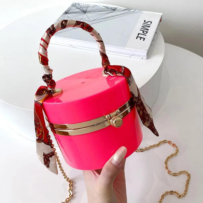 Acrylic Scarf Clutch for Women Metal Shoulder Chain Bag