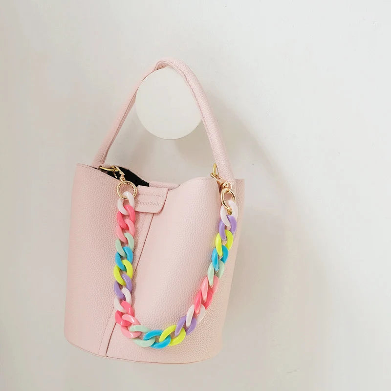 Add a pop of color to your handbag with this detachable candy resin strap chain. Made of durable acrylic, this fashion accessory is perfect for adding a stylish touch to your look.